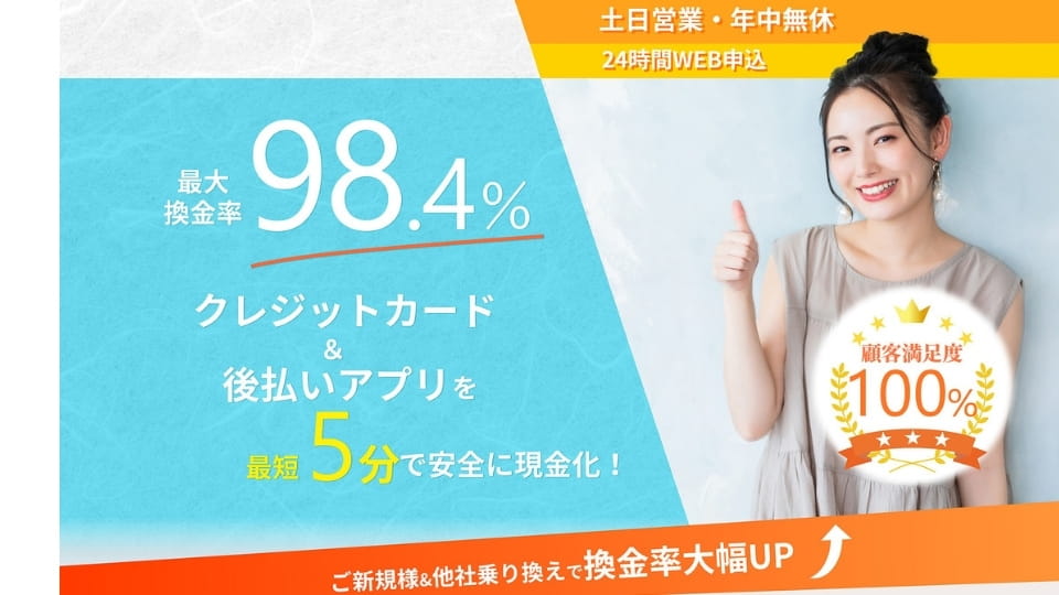 来店不要、審査不要で高い換金率で利用可能です。