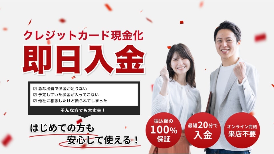 またクレジットカードの手数料が10%程度かかりますが、クレジットカードの支払いは翌月や翌々月になるため、早く現金を手に入れることができます。